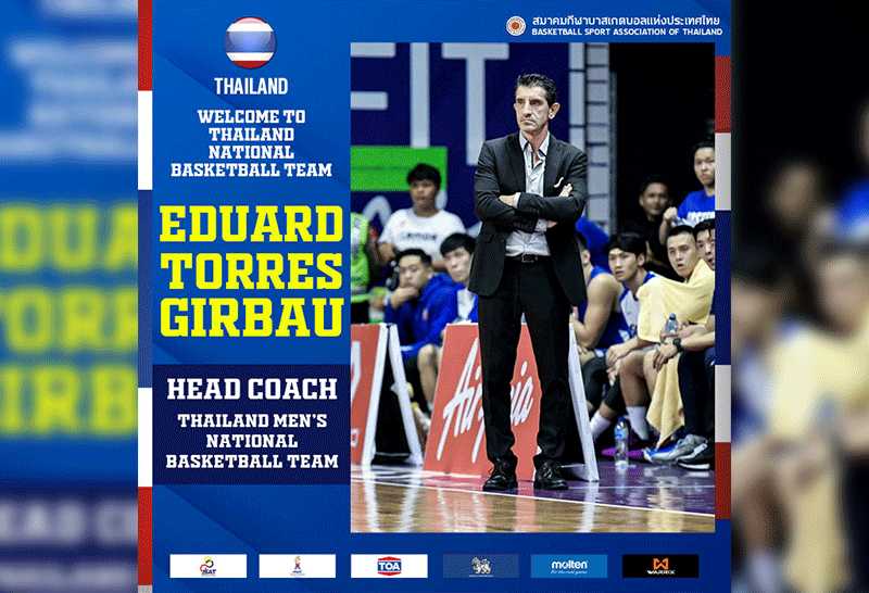 สมาคมกีฬาบาสเกตบอลแห่งประเทศไทย มีความยินดีจะประกาศให้ทราบว่า ทางสมาคมฯ ได้ทำการเซ็นสัญญากับ โค้ช Eduard Torres Girbau หรือเราเรียกกันว่าโค้ช Edu Torres จากสเปน มาเป็นผู้ฝึกสอนให้กับนักบาสเกตบอลชาย ทีมชาติไทย โดยมีพันธสัญญา 1 ปีเริ่มจากการเฟ้นหาตัวนักกีฬาที่มีฝีมือเข้าร่วมการคัดตัวทีมชาติที่จะมีขึ้นในรายการต่างๆ