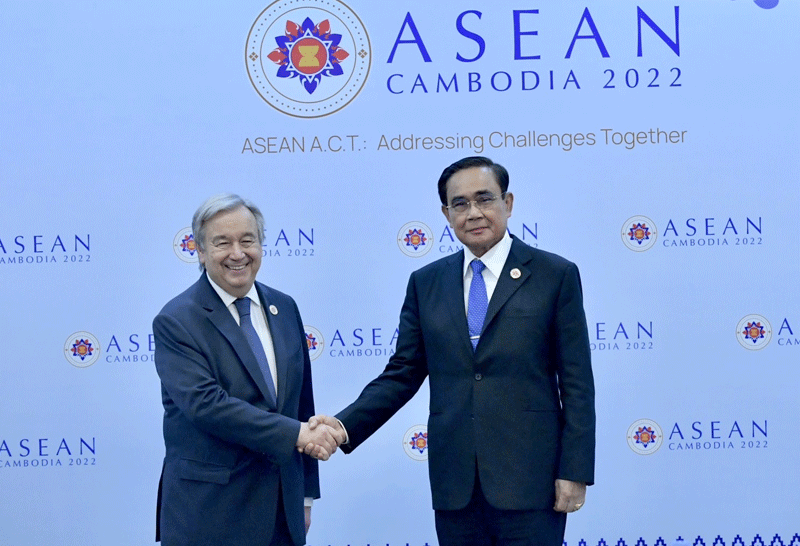 วันนี้ (12 พฤศจิกายน 2565) เวลา 16.50 น. ตามเวลาท้องถิ่น ณ กรุงพนมเปญ ราชอาณาจักรกัมพูชา (เวลาเท่ากับประเทศไทย) พลเอก ประยุทธ์ จันทร์โอชา นายกรัฐมนตรีและรัฐมนตรีว่าการกระทรวงกลาโหม หารือกับ นายอันโตนิอู กุแตเรช (H.E. Mr. António Guterres) เลขาธิการสหประชาชาติ ในห้วงการประชุมสุดยอดอาเซียน-สหประชาชาติ ครั้งที่ 12 เพื่อแลกเปลี่ยนความคิดเห็นในเรื่องต่างๆ ที่อยู่ในความสนใจร่วมกัน นายอนุชา บูรพชัยศรี รองเลขาธิการนายกรัฐมนตรีฝ่ายการเมือง ปฏิบัติหน้าที่โฆษกประจำสำนักนายกรัฐมนตรี เปิดเผยสาระสำคัญ ดังนี้