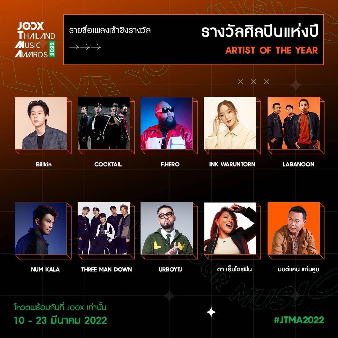 รายชื่อศิลปิน และเพลงที่ได้รับการเสนอเข้าชิงรางวัล JTMA 2022