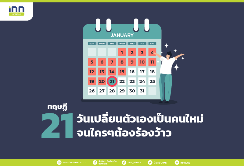 จะปีใหม่แล้ว เป้าหมายที่วางกันไว้สำเร็จรึเปล่า ไม่ว่าปีนี้ฉันจะผอม ปีนี้จะเก็บเงินให้ได้เยอะๆ ปีนี้ฉันจะไม่นอนดึก หลายคนก็ทำได้ตามที่หวังไว้ แต่หลายคนก็ล้มเลิกไปตั้งแต่เดือนแรก เอาล่ะไม่เป็นไร ปีใหม่คนใหม่ ตั้งเป้าหมายใหม่ได้ทุกครั้ง รอบนี้ INN มีเทคนิคมาช่วยให้เราสามารถทำเสร็จตามเป้าหมายที่ตั้งไว้ได้ง่ายขึ้นด้วย “ทฤษฏี 21 วัน”