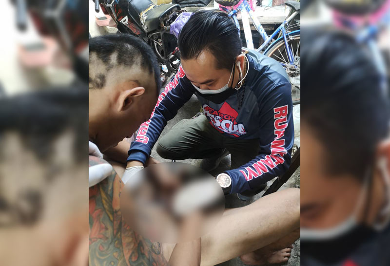 เจ้าหน้าที่อาสาร่วมกตัญญู รับแจ้งขอความช่วยเหลือจากผู้บาดเจ็บ ที่มีแม่กุญแจ ติดอยู่ที่อวัยวะเพศชายเหตุเกิด ภายในซอยสวนเงินถนนพระราม 6 พื้นที่รับผิดชอบ สถานีตำรวจนครบาล พญาไท