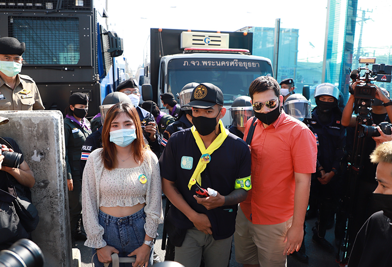 “โตโต้-ครูใหญ่” ถึงสภ.คลองหลวง รับทราบข้อหาปมชุมนุมชักธงแดง ขณะตำรวจกันพื้นที่ห้ามผู้ไม่เกี่ยวข้องเข้ารวมถึงสื่อด้วย