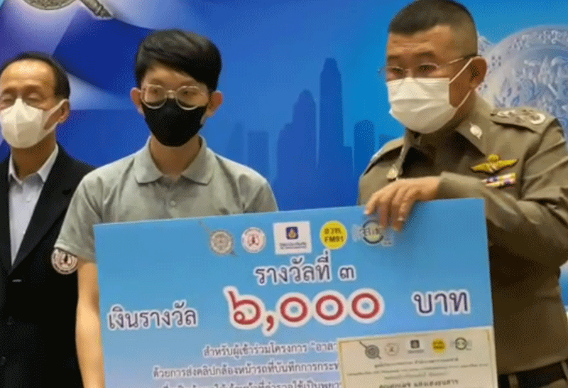 ตร.มอบรางวัลอาสา ตาจราจรส่งคลิปกล้องหน้ารถรวม 1เเสนบาท