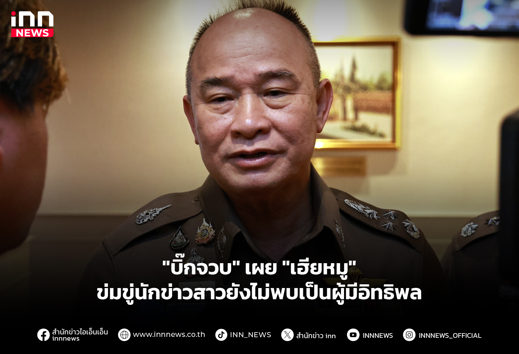 “บิ๊กจวบ” เผย “เฮียหมู” ข่มขู่นักข่าวสาวยังไม่พบเป็นผู้มีอิทธิพล