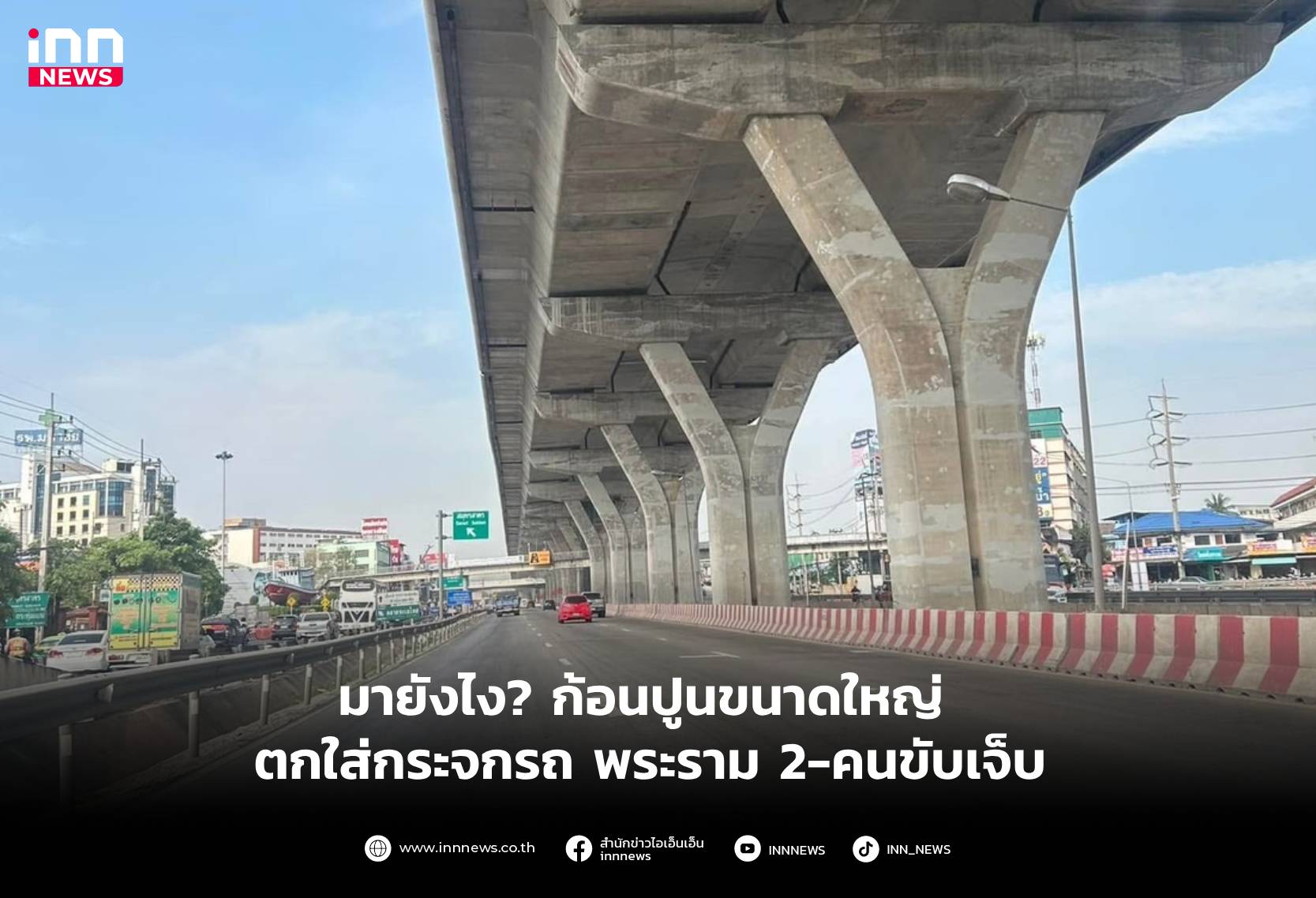 มายังไง? ก้อนปูนขนาดใหญ่ตกใส่กระจกรถ ขณะรถแล่นผ่านใต้ทางต่างระดับ ถนนพระราม 2 ทำคนขับบาดเจ็บ