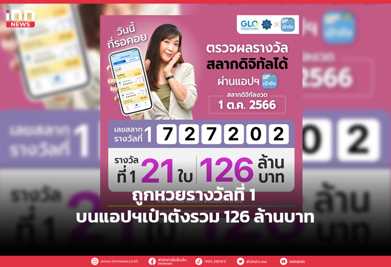 สลากดิจิทัล บนแอปฯเป๋าตัง ถูกรางวัลที่ 1 ทั้งหมด 21 ใบ 126 ล้านบาท มากสุด 4 ใบ 24 ล้านบาท