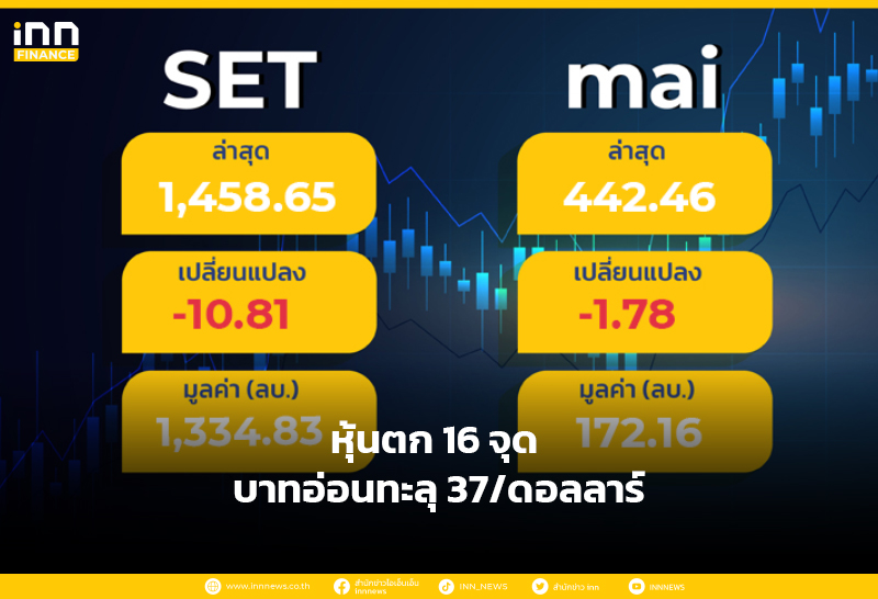 หุ้นตก 16 จุด บาทอ่อนทะลุ 37/ดอลลาร์