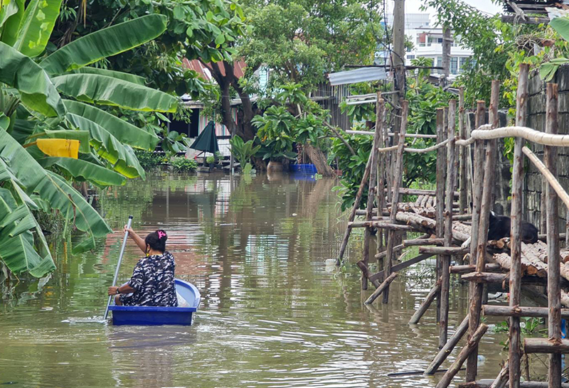 น้ำท่วมปทุมธานีชาวบ้านกลางกว่า 400 ครัวเรือน