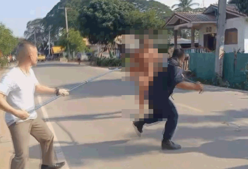 ระทึก! ชายคลั่งแก้ผ้าตีหัวแม่แตกเลือดอาบ วิ่งไล่แทงตำรวจกู้ภัยหนีแทบไม่ทัน