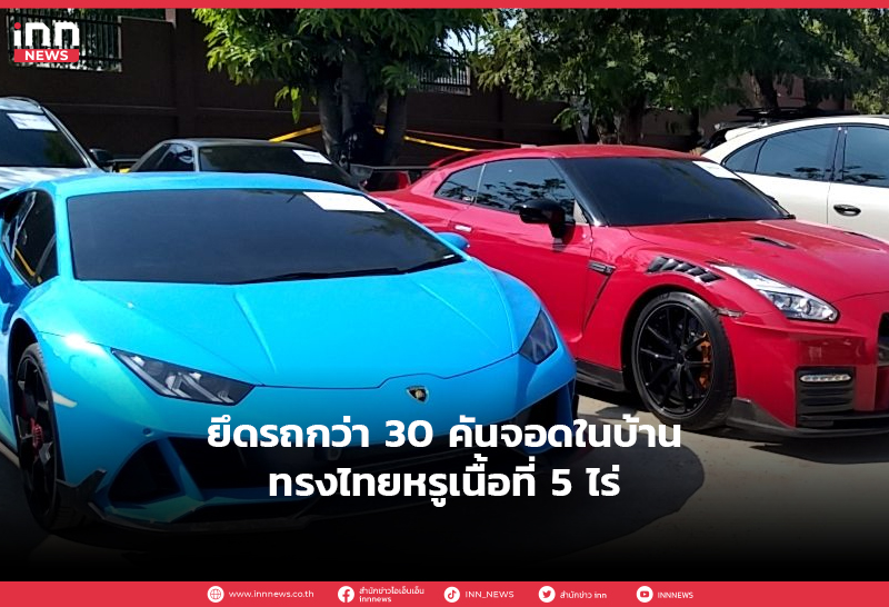 ยึดรถกว่า 30 คันจอดในบ้านทรงไทยหรูเนื้อที่ 5 ไร่