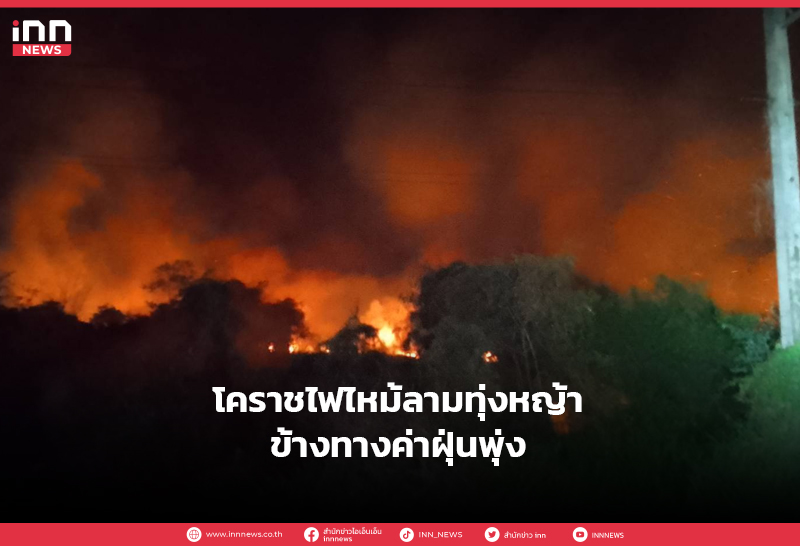โคราชไฟไหม้ลามทุ่งหญ้าข้างทางค่าฝุ่นพุ่ง