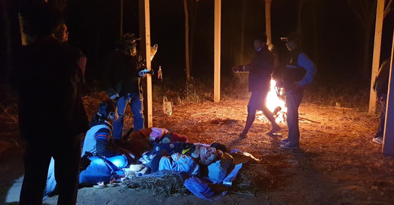 นายคณพศ สายสกล ผู้ใหญ่บ้านหมู่ 5 บ้านหนองเสือ ตำบลอ่าวน้อย อำเภอเมือง จังหวัดประจวบคีรีขันธ์ ได้รับแจ้งจากลูกบ้านว่า พบกลุ่มบุคคลแปลกหน้าเป็นชาวเมียนมามาหลบซ่อนตัวเดินอยู่ในป่าสวนยางพาราท้ายหมู่บ้านของชุมชนกะเหรี่ยงภายในหมู่บ้านเนินแก้ว หมู่ 5 ซึ่งติดกับแนวเทือกเขาตะนาวศรีชายแดนไทย-เมียนมา จึงรายงานให้ นายวิโรจน์ ชูแก้ว รักษาราชการแทนนายอำเภอเมืองประจวบคีรีขันธ์ ผู้บังคับบัญชาทราบ พร้อมประสานขอสนับสนุนกำลังจากผู้ใหญ่บ้าน ผู้ช่วยผู้ใหญ่บ้าน และเจ้าหน้าที่ ชรบ.ในเขตพื้นที่ตำบลอ่าวน้อย ร่วมกับ นายสมยศ สำเภารัตน์ ปลัดอำเภอหัวหน้าฝ่ายความมั่นคงอำเภอเมืองประจวบ นำกำลังเจ้าหน้าที่อาสารักษาดินแดน (อส.) ร่วมเข้าจับกุมแต่เมื่อไปถึงพบกลุ่มบุคคลต่างด้าวชาวเมียนมา จำนวน 5 ราย กำลังเดินอยู่ในป่าสวนยางพารา เพื่อเตรียมที่จะเดินข้ามไปยังแนวป่าสันแดนไทยบริเวณช่องทางธรรมชาติมุ่งหน้าสู่ประเทศเมียนมา ทีมชุดจับกุมของผู้ใหญ่บ้านจึงได้แสดงตัวเข้าตรวจสอบ ระหว่างนั้นคนนำพาซึ่งเป็นชาวเมียนมาได้อาศัยความมืดวิ่งหลบหนีเข้าไปในป่าทิ้งให้แม่ลูกชาวเมียนมาถูกเจ้าหน้าที่จับกุมได้รวม 4 รายประกอบด้วย นาง ตานตานเม อายุ 30 ปี ทำงานและพักอาศัยอยู่กับนายจ้างที่บ้านมาบอำมฤต เลขที่ 29/5 หมู่ 13 ตำบลดอนยาง อำเภอปะทิว จังหวัดชุมพร และ เด็กชาย 1 คน อายุ 10 ปี และเด็กหญิงอายุ 7 ปี 2 คน