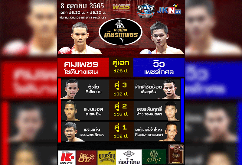JKN18 ส่งรายการมวยใหม่ “ศึกมวยไทยเกียรติเพชร” ลงผัง ประเดิมนัดแรก 8ต.ค. นี้ ณ เวทีมวยเวิร์ลสยามสเตเดี่ยม ตะวันนา บางกะปิ