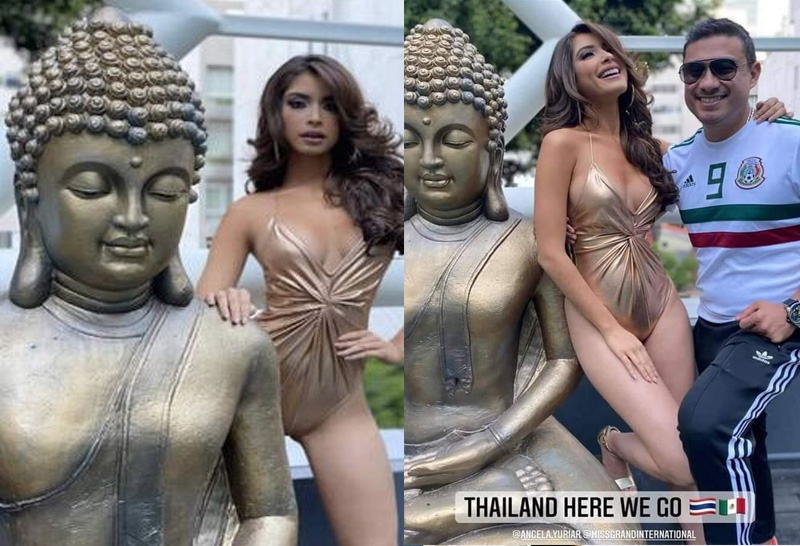จากกรณีที่ เพจนางงาม เบิ่งนางงาม ได้ออกมาเปิดประเด็นดราม่า ด้วยการเผยภาพผู้เข้าประกวด มิสแกรนด์เม็กซิโก ได้ถ่ายรูปและคลิปวีดีโอ สวมชุดว่ายน้ำ ถ่ายคู่กับพระพุทธรูป และเอามือจับบริเวณที่ขาอ่อนของตนเอง และอีกรูปที่เอามือวางไว้บนไหล่พระพุทธรูป โดยระบุข้อความว่า “Angela Yuriar Miss Grand Mexico 2020 ผู้เข้าประกวด Miss Grand International 2020 ที่กำลังจะบินมาประกวดที่ประเทศไทย ได้ปล่อยคลิปชุดว่ายน้ำที่สระว่ายน้ำของโรงแรมแห่งหนึ่ง แต่ซึ่งทางโรงแรมนั้นได้ตั้งพระพุทธรูปอยู่ใน Swimming pool อยู่แล้ว แต่ด้วยความที่ไม่รู้ในวัฒนธรรมชาวพุทธ ทำให้สาวงามคนนี้ได้มีการใส่ชุดว่ายน้ำแล้วถ่ายคู่กับพระพุทธรูป ซึ่งทำให้เกิดการดราม่าในเรื่องความเหมาะสมและความละเอียดอ่อนทางศาสนา อย่างไรก็ตามเรื่องนี้น่าจะเป็นกระแสพอสมควร และด้วยความที่ไม่รู้และไม่เข้าใจในเรื่องศาสนา แอดคิดว่านางต้องออกมาพูดอะไรสักอย่างกับเรื่องนี้แน่นอน ยังไงก็เป็นกำลังใจให้นางกับเรื่องดราม่าที่เกิดขึ้นด้วยนะคะ” ซึ่งทำให้เกิดเสียงวิพากษ์วิจารณ์ถึงความไม่เหมาะสมเป็นอย่างมาก