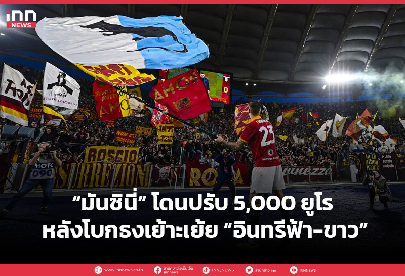 “จานลูก้า มันชินี่” กองหลัง โรม่า โดนเซเรีย อา สั่งปรับเงิน 5,000 ยูโร จากกรณีโบกธงหยามเกียรติคู่แข่ง หลังเกมเปิดบ้านเอาชนะ ลาซิโอ 1-0
