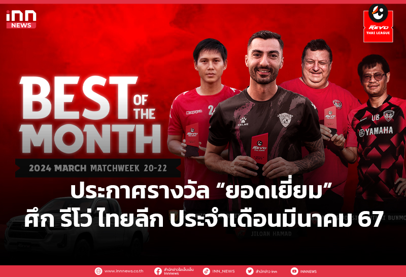 ประกาศรางวัล “ยอดเยี่ยม” ศึก รีโว่ ไทยลีก ประจำเดือนมีนาคม 67