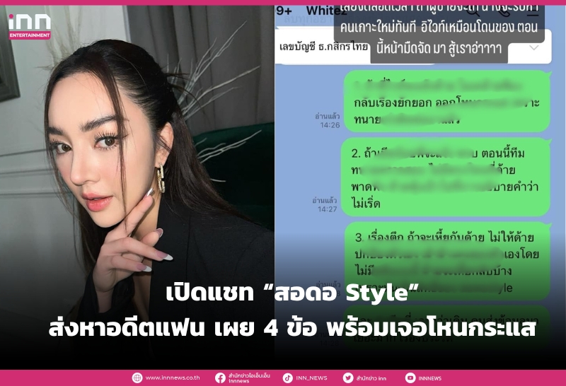 ล่าสุดเพจดังหลายเพจออกมาเปิดแชทของ “สอดอ Style” และอดีตแฟนหนุ่ม “ไวท์” ที่อ่านแล้วขนลุก ฟ้องมาฟ้องกลับ พร้อมเจอที่โหนกระแส เปิด 4 ข้อที่ส่งให้ฉ่ำๆดังนี้