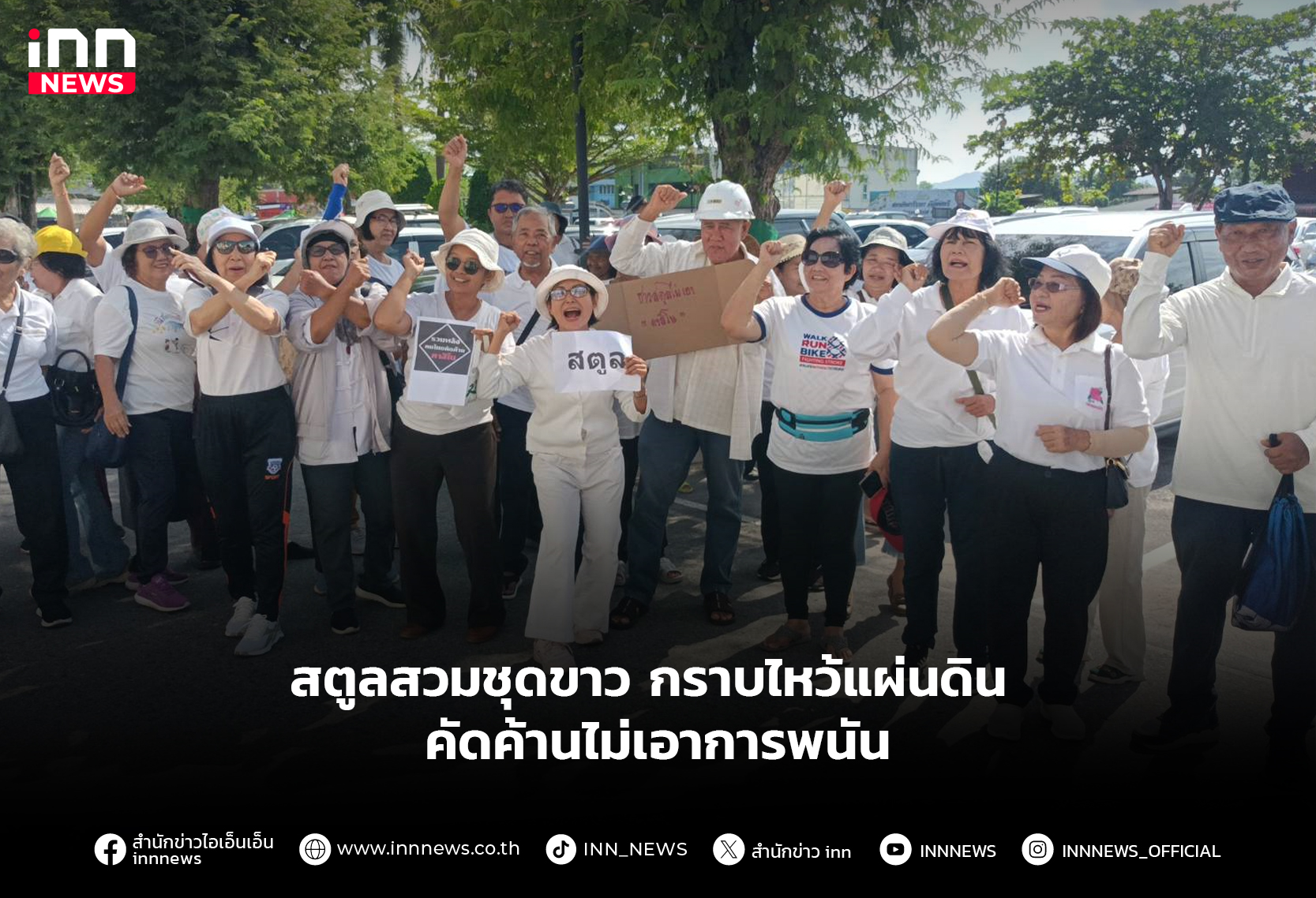 สตูลสวมชุดขาว กราบไหว้แผ่นดิน คัดค้านไม่เอาการพนัน