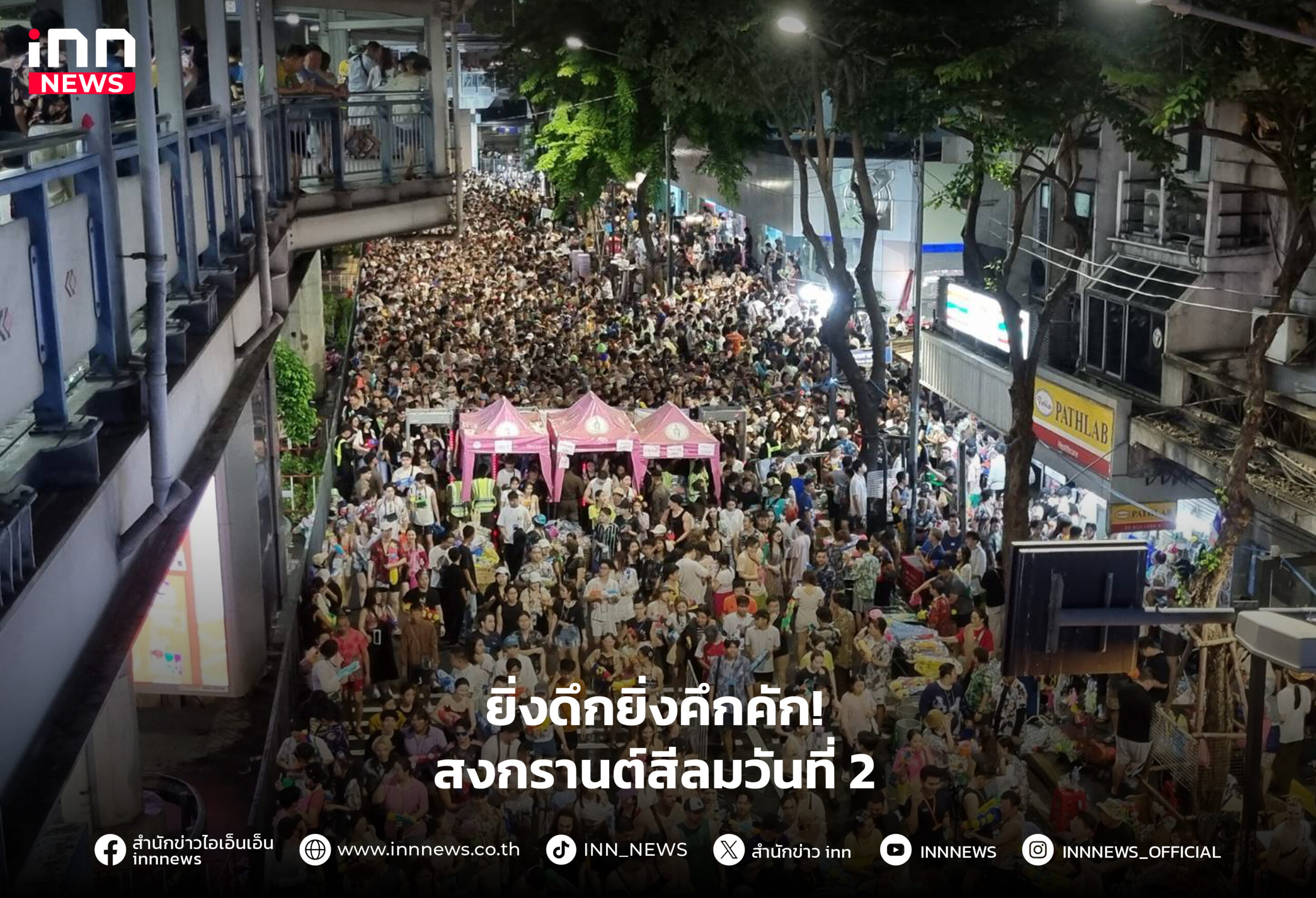 สงกรานต์สีลมวันที่ 2 สุดมันส์!  นักท่องเที่ยว ชาวไทย-ต่างชาติ เล่นน้ำคับคั่ง สาดน้ำกันฉ่ำ ตั้งเวทีเครื่องเสียงเพิ่มความสนุก