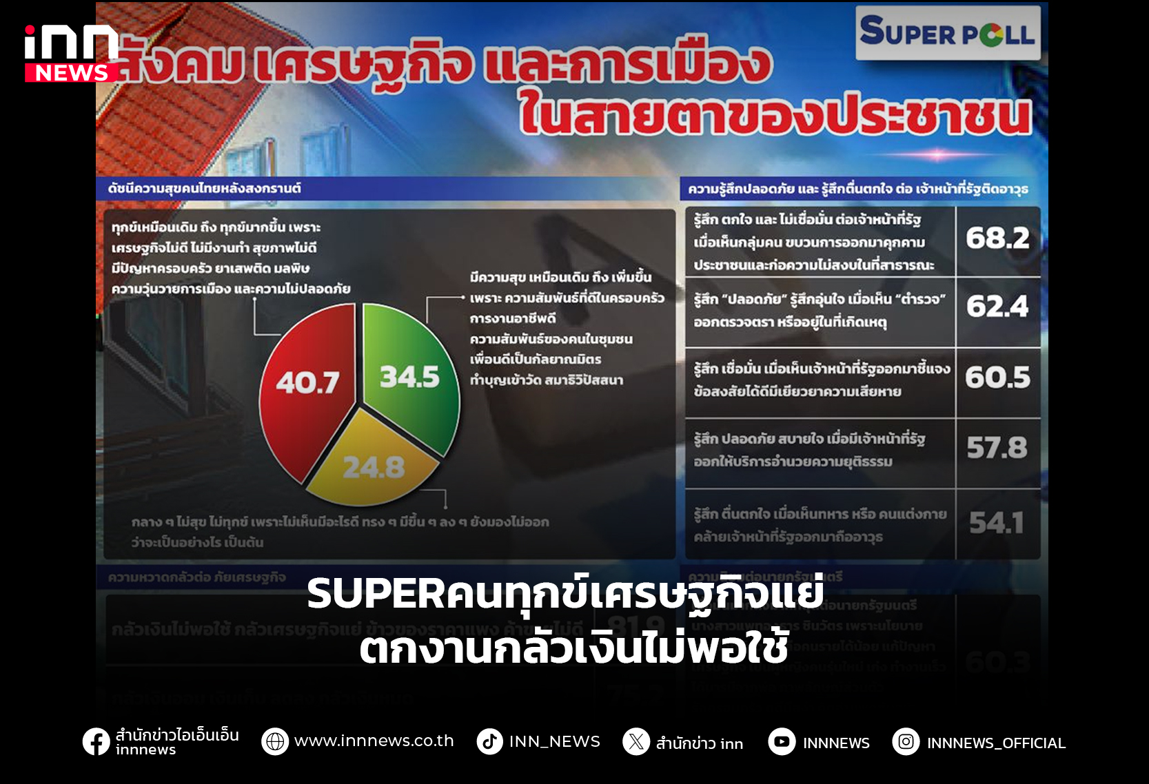 SUPERโพลหลังสงกรานต์กลับมาทุกข์ เหตุเศรษฐกิจแย่ ไม่มีงานทำ กลัวเงินไม่พอใช้ บอกตกใจ-ไม่เชื่อมั่น จนท.รัฐติดอาวุธ