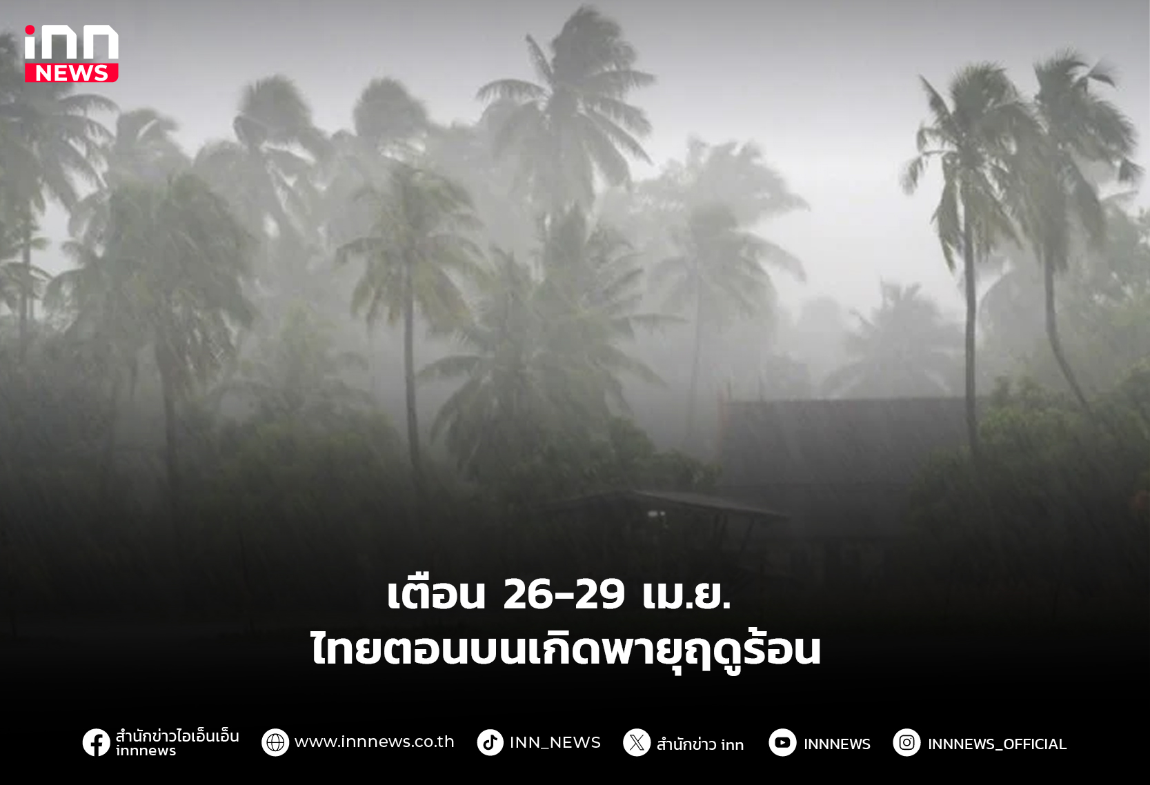 อุตุ เตือน 26-29 เม.ย. ไทยตอนบนเกิดพายุฤดูร้อน ระวังอันตรายจากฝนตกหนักบางพื้นที่