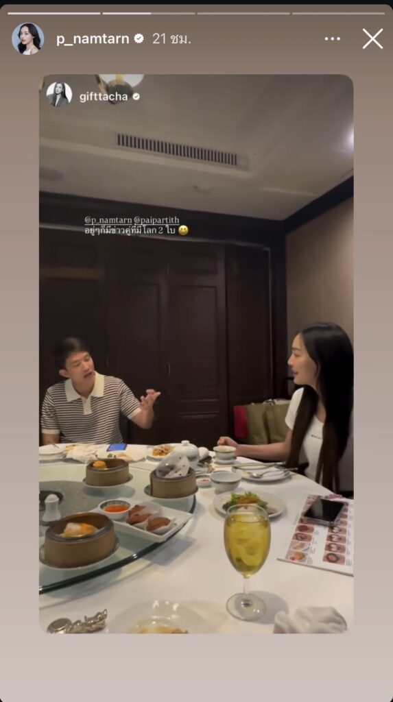 ล่าสุด “น้ำตาล พิจักขณา” ได้รีสตอรี่เพื่อนสาวที่ถ่ายวิดีโอ ”ไผ่ – น้ำตาล” พูดคุยกันขำๆในร้านอาหารเกี่ยวกับประเด็น ดังกล่าว ซึ่งในคลิปวิดีโอ “น้ำตาล” ได้ถามว่า “ไผ่” ว่า “มีโลกสองใบเหรอ” ทางด้าน“ไผ่ พาทิศ” ไม่รอช้ารีบให้คำตอบเรื่องนี้ไว้ว่า “บ้า มีอยู่ 10 ใบ มีเรื่องป่า มีเรื่องหมา เรื่องไปเที่ยว เรื่องดำน้ำ มีหลายใบ แต่มีแฟนแค่คนเดียว ขอโทษทุกคนด้วยนะครับ”