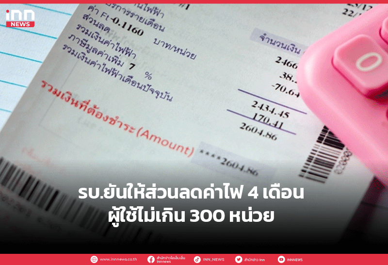 รบ.ยันให้ส่วนลดค่าไฟ 4 เดือนผู้ใช้ไม่เกิน 300 หน่วย