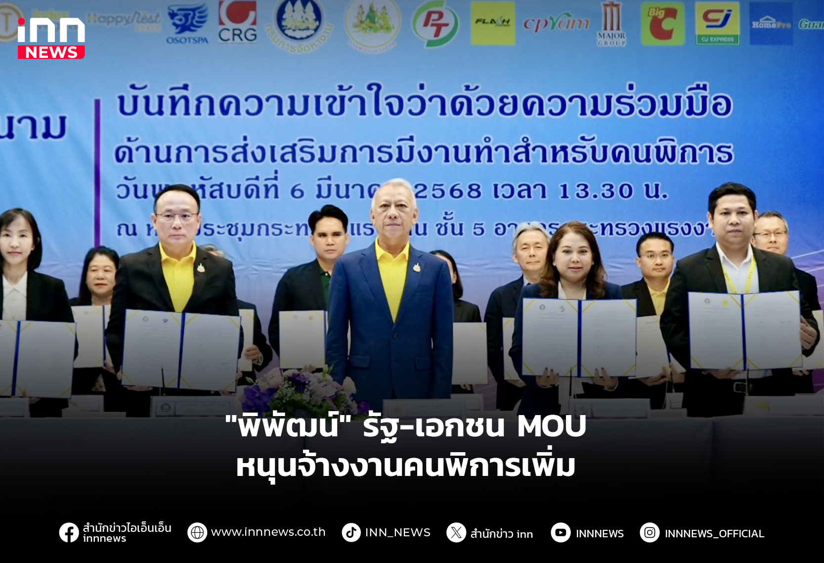 “พิพัฒน์“ รัฐ-เอกชน ลงนาม MOU หนุนจ้างงานคนพิการ เพิ่มโอกาส สร้างอาชีพ มั่นคง