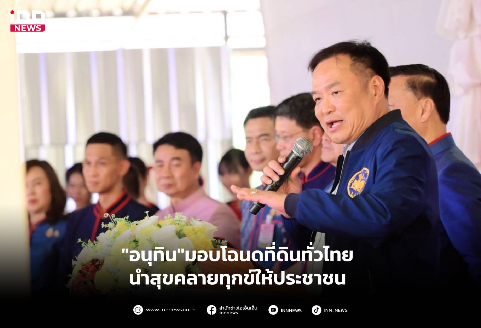 นายอนุทิน ชาญวีรกูล รองนายกรัฐมนตรีและรมว.มหาดไทย เป็นประธานพิธีมอบโฉนดที่ดินตามโครงการ “มอบโฉนดที่ดินทั่วไทย นำสุขคลายทุกข์ให้ประชาชน” ตามโครงการเดินสำรวจออกโฉนดที่ดิน ประจำปี 2568 ณ วัดม่วงสุม หมู่ 3 บ้านนามน ต.นาเลียง อ.นาแก จ.นครพนม โดยนายทรงศักดิ์ ทองศรี รมช.มหาดไทย น.ส.ซาบีดา ไทยเศรษฐ์ รมช.มหาดไทย นายอรรษิษฐ์ สัมพันธรัตน์ ปลัดกระทรวงมหาดไทย นายไชยวัฒน์ จุนถิระพงศ์ อธิบดีกรมการปกครอง นายสยาม ศิริมงคล อธิบดีกรมการพัฒนาชุมชน นางรณิดา เหลืองฐิติสกุล ผู้ตรวจราชการกระทรวงมหาดไทย เขตตรวจราชการที่ 11 และนายปราชญา อุ่นเพชรวรากร ผู้ว่าราชการจังหวัดนครพนม ร่วมด้วย