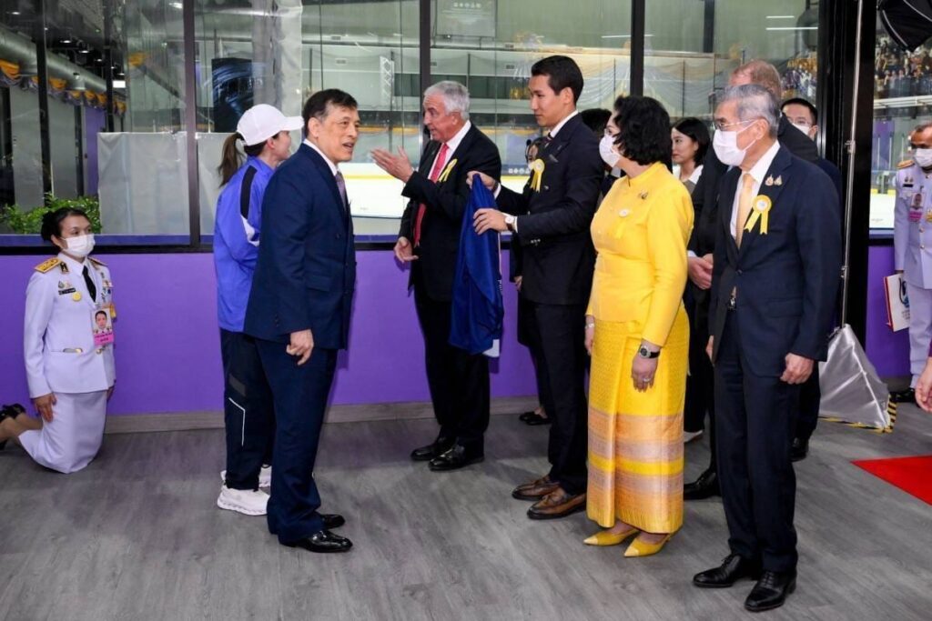 เมื่อวันที่ 6 ตุลาคม ที่ผ่านมา พระบาทสมเด็จพระเจ้าอยู่หัว และ สมเด็จพระนางเจ้าฯ พระบรมราชินี เสด็จพระราชดำเนินไปทอดพระเนตรการแข่งขันฮอกกี้น้ำแข็งกระชับมิตร ระหว่าง สาธารณรัฐประชาชนจีน และ ราชอาณาจักรไทย ณ สนามฮอกกี้น้ำแข็ง Thailand International Ice Hockey Arena เขตห้วยขวาง กรุงเทพมหานคร โดยมี นางสาวแพทองธาร ชินวัตร นายกรัฐมนตรี นายสรวงศ์ เทียนทอง รัฐมนตรีว่าการกระทรวงการท่องเที่ยวและกีฬา นายหาน จื้อเฉียง เอกอัครราชทูตสาธารณรัฐประชาชนจีนประจำประเทศไทย ดร.ก้องศักด ยอดมณี ผู้ว่าการการกีฬาแห่งประเทศไทย หม่อมหลวงกฤษฎา เกษมสันต์ นายกสมาคมกีฬาฮอกกี้น้ำแข็งแห่งประเทศไทย พร้อมคณะกรรมการ และคณะทำงาน เฝ้าฯ รับเสด็จ ในโอกาสที่ สมเด็จพระนางเจ้าฯ พระบรมราชินี ซึ่งทรงดำรงตำแหน่งทูตกีฬาไอซ์ฮอกกี้หญิงกิตติมศักดิ์ (Women’s Global Ambassador) คนแรก ทรงนำทีมไอซ์ฮอกกี้ราชอาณาจักรไทยแข่งขันกับทีมสาธารณรัฐประชาชนจีน นัดกระชับมิตรในครั้งนี้ด้วย
