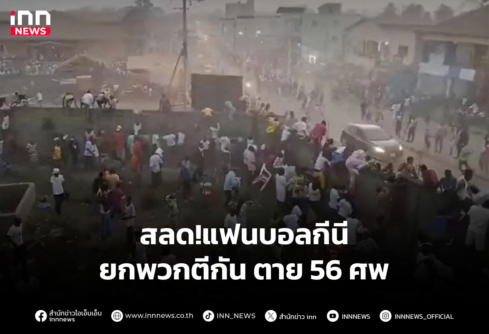 สำนักข่าวต่างประเทศรายงานว่า เกิดเหตุการณ์สลด หลังแฟนบอลยกพวกตีกัน ระหว่างการแข่งขันฟุตบอล ที่สนามกีฬาในเมือง เอ็นเซเรโกเร เมืองใหญ่อันดับ 2 ของประเทศกินี ในแอฟริกาตะวันตก เมื่อวันอาทิตย์ที่ผ่านมา เป็นเหตุให้มีผู้เสียชีวิตแล้วอย่างน้อย 56 ศพ บาดเจ็บอีกจำนวนมาก