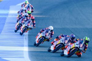 ศึก เรดบูล โมโตจีพี รุกกีส์ คัพ 2025 สนามแรก ถูกบรรจุเป็นซัพพอร์ตเรซของการแข่งขันโมโตจีพี รายการ สแปนิช กรังด์ปรีซ์ ซึ่งนับเป็นฤดูกาลแรกที่ “ไม้คิว-เกียรติศักดิ์” นักบิดเลือดใหม่ลงแข่งขันแบบเต็มฤดูกาล เพื่อดวลกับสุดยอดดาวรุ่งจากทั่วโลกกว่า 25 คน ในสนามที่ท้าทาย ซึ่งสามารถปรับตัวได้อย่างรวดเร็ว โดยคว้ากริดสตาร์ตอันดับที่ 6 มาครองจากรอบควอลิฟาย