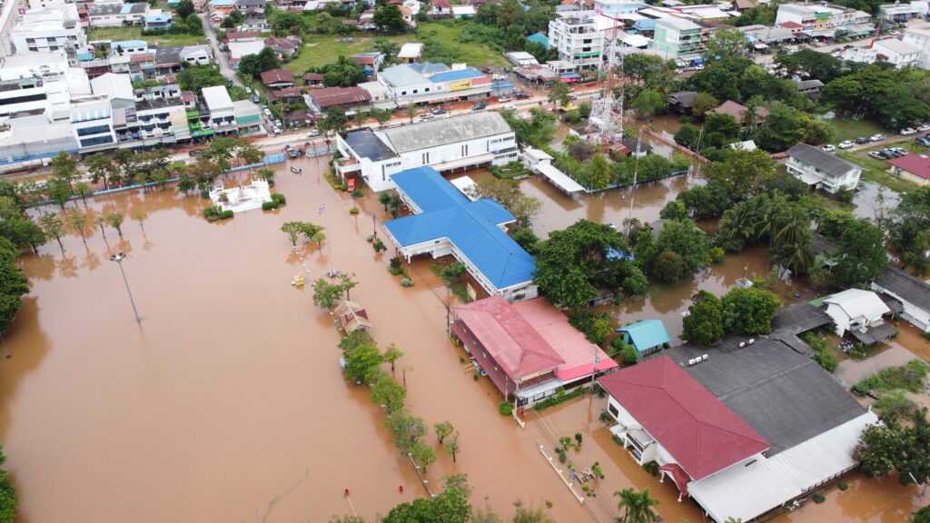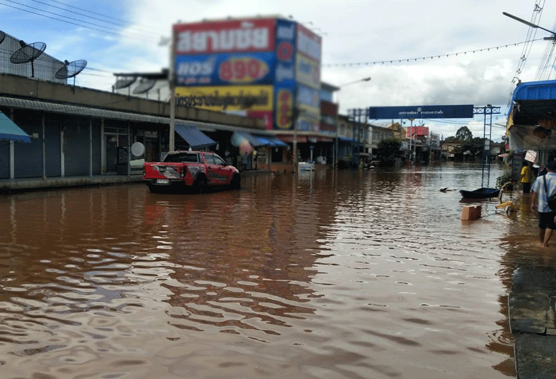 มวลน้ำยังทะลักท่วมอำเภอชุมพวง ต่อเนื่อง สถานที่ราชการอ่วม น้ำท่วมสูงเกือบ 1 เมตร ไปรษณีย์ปิดให้บริการ