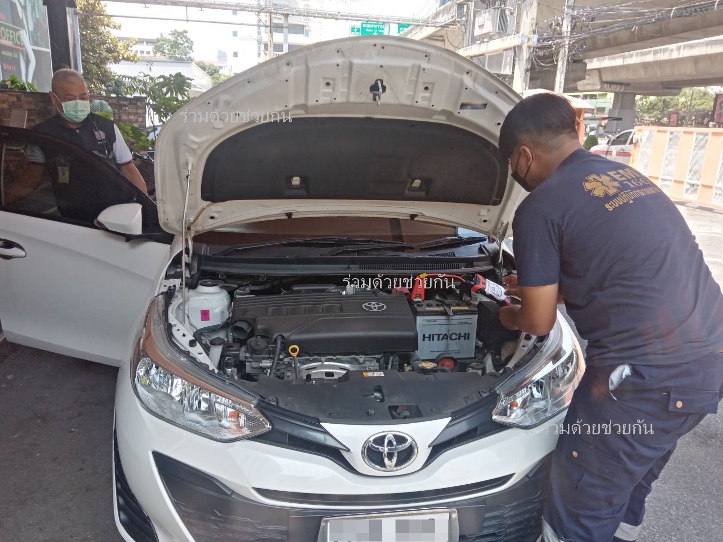 อาสาร่วมด้วยซีบีห้วยขวาง 526 ร่วมตรวจสอบเหตุ ประชาชนขอความช่วยเหลือรถยนต์จอดเสีย หน้าอาคารวันออฟฟิศ ถนนศูนย์วิจัย เขตห้วยขวาง กรุงเทพฯ พบรถเก๋ง โตโยต้า ยาริส ขาว อาสาใช้อุปกรณ์เข้าช่วยเหลือพ่วงแบตเตอรี่ได้สำเร็จ รถสตาร์ทติดขับเคลื่อนต่อไปได้ พื้นที่ สน.มักกะสัน