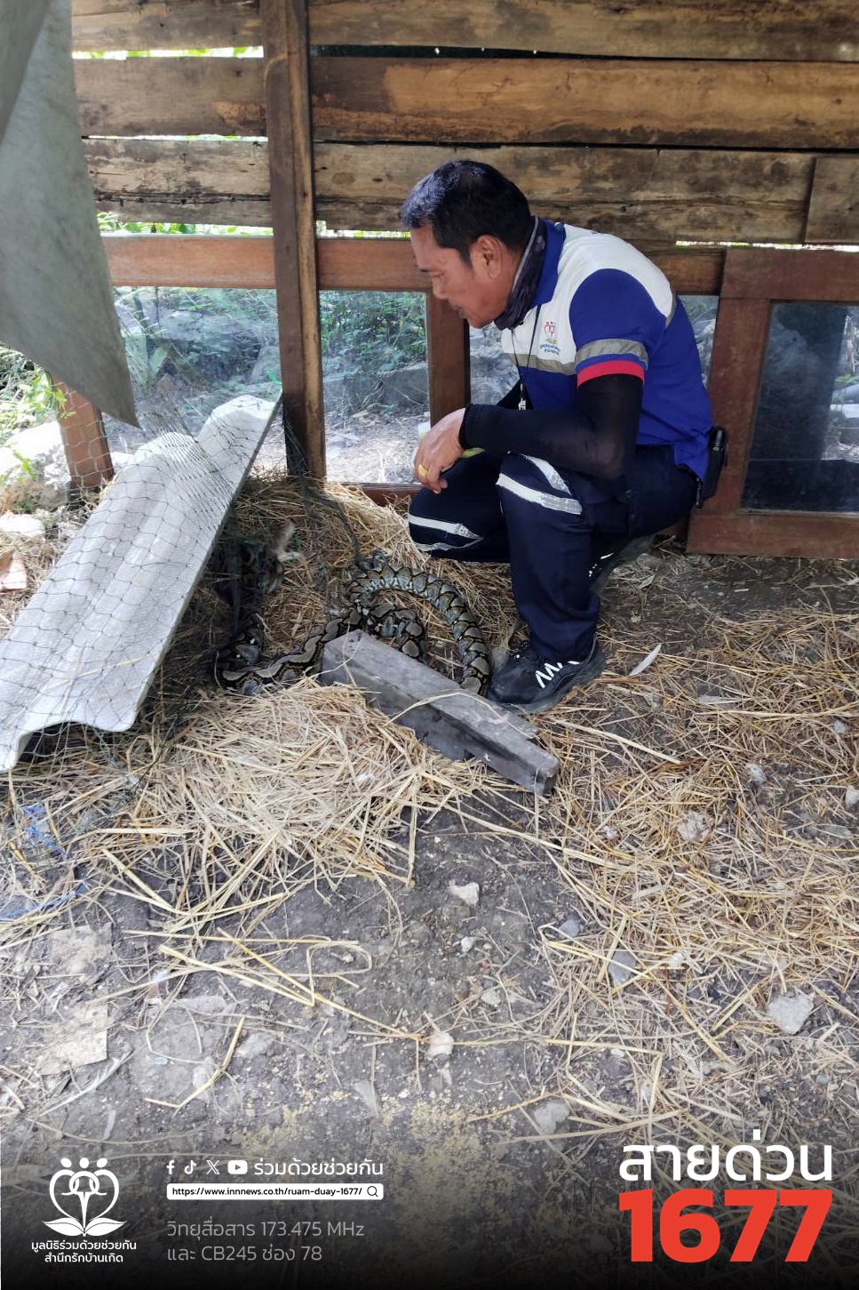 อาสาฯจับงูติดตาข่ายข้างเล้าไก่