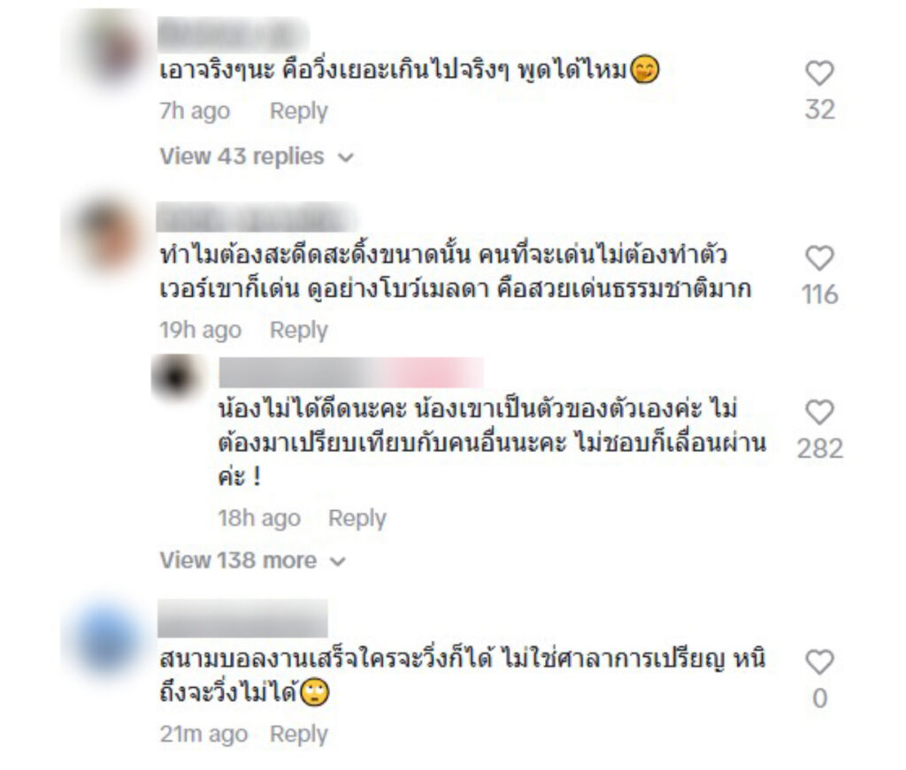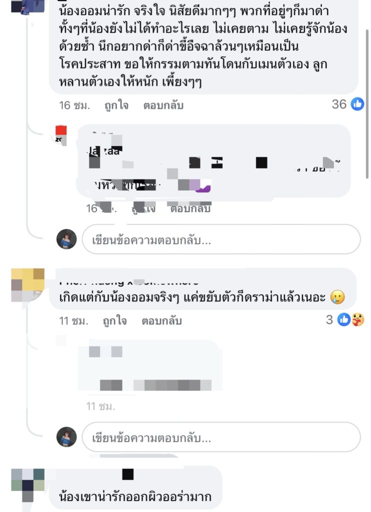 ต่อมาทางด้านแฟนคลับของสาว ”ออม“ ก็ออกมาปกป้อง เต็มโชเซียลมองว่าเป็นธรรมชาติของสาว”ออม” เป็นตัวของตัวเอง จะดราม่าอะไรก่อน, อย่าตัดเสียงเพียงแค่คลิปไม่กี่วิ, เขาวิ่งเล่นกันในสนาม แต่แปลกนะที่ไปหนักบนหัวคนอื่น,ออมน่ารักมาก และอีกมากมาย