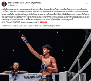 “ผมรู้สึกเหมือนถูกบังคับให้ชกมวยสากล เหมือนถูกดึงไปโดยที่ยังไม่ได้ตกลงอะไรคุยอะไรกับผมเลย แบบนี้มันดูไม่ค่อยดีเท่าไหร่ ผมให้เกียรติผู้หลักผู้ใหญ่ทุกคนครับ แต่จะมาเคลมตอนที่ผมพอมีชื่อเสียงแล้ว ผมคิดว่ามันดูไม่โอเคสำหรับผม ณ ที่นี้ ผมจะยังคงชกอยู่ในรายการที่ปั้นผมขึ้นมาจนผมมีทุกวันนี้ ONE CHAMPIONSHIP ผมขอขอบคุณมากๆครับ”