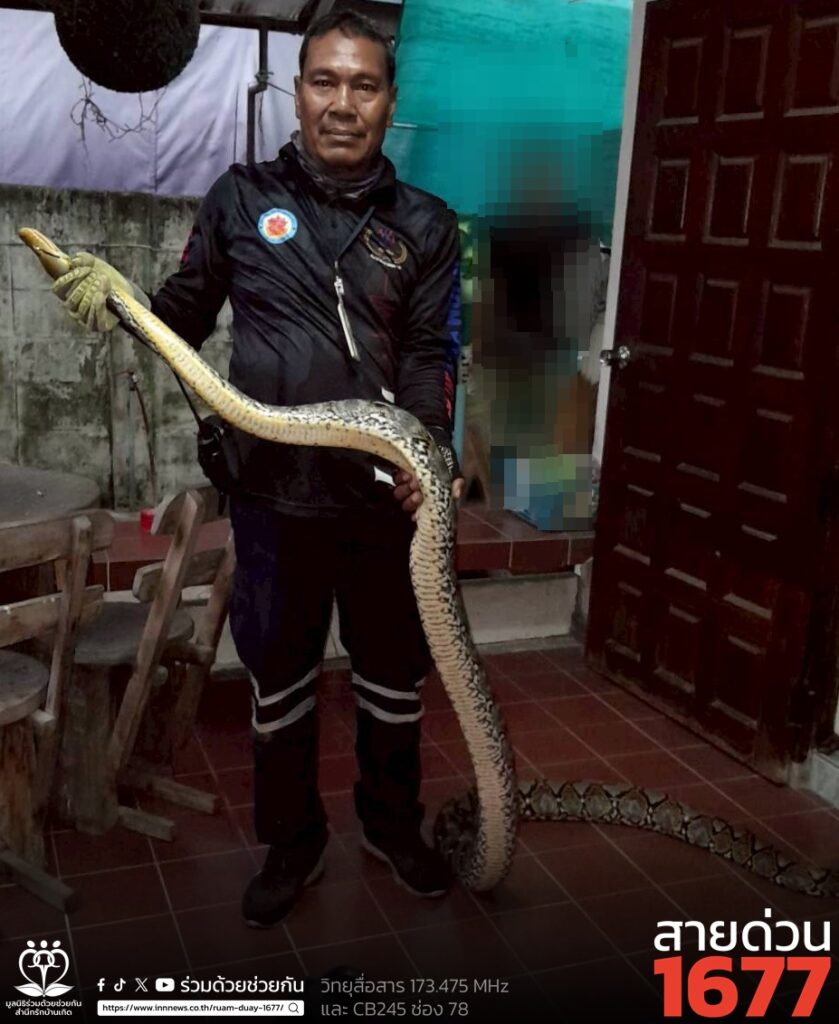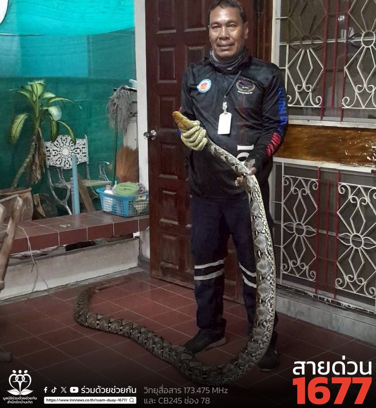 งูเหลือมบุกรุก! พบเห็นโทร.1677 ร่วมด้วยช่วยกัน พร้อมประสานอาสาร่วมด้วยช่วยเหลือ