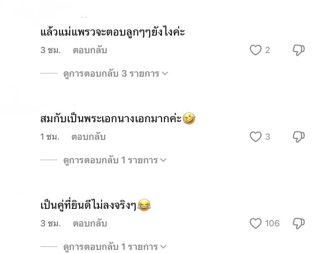 ท่ามกลางเพื่อนในวงการและแฟนคลับเข้ามาแสดงความยินดีกับทั้งคู่อย่างมากมายแต่ไม่วายก็เจอชาวเน็ตบางกลุ่มเข้ามาแซะแรงทำนองว่า “ละครเรื่องอะไรคะ, เป็นคู่ที่ยินดีไม่ลงจริงๆ😂, สมกับเป็นพระเอกนางเอกมากค่ะ🤣 , ช่อดอกไม้สั่งร้านเดียวกันหมดติ😅😅😅ข่อยถาม , ยังงัย ดูยังงัย ก็เหมือนการแสดง , แล้วแม่แพรวจะตอบลูกๆๆยังไงค่ะ”