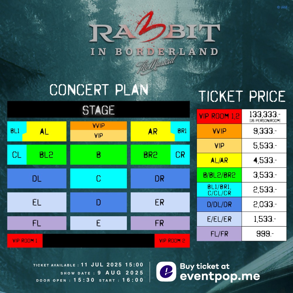 “Rabbit in Borderland” The Musical จะเปิดจำหน่ายบัตรวันที่ 11 กรกฎาคมนี้ ตั้งแต่เวลา 15.00 น. เป็นต้นไป ผ่านช่องทาง eventpop.me ราคาเริ่มต้น 999 / 1,533 / 2,033 / 2,533 / 3,533 / 4,533 / 5,533 / 9,333 / 133,333 บาท และสามารถติดตามรายละเอียดเพิ่มเติมได้ที่ : https://www.facebook.com/bnk48official #BNK48_RabbitInBorderland #BNK483rdGeneration #BNK48