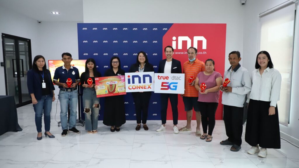 คุณภูริโชติ วงศ์โกมลเชษฐ์ Head of Digital Enhancement พร้อมด้วย คุณสุนิษา อนันทนุพงศ์ Associate Director (Mobile Content – Content Business Partnership) ผู้ช่วยผู้อำนวยการสายงานโมบายล์ คอนเทนต์ บริษัท ทรู คอร์ปอเรชั่น จำกัด (มหาชน) และ คุณสิริธรา เบญจรงคกุล กรรมการผู้จัดการ บริษัท ไอเอ็นเอ็น คอนเนกซ์ จำกัด ร่วมกันมอบรางวัลให้กับผู้โชคดี จากการร่วมสนุกใน กิจกรรม “ดวงเศรษฐี ลุ้นรวยทอง” เป็นกิจกรรมที่ ทรู 5 G และ ดีแทค จัดทำร่วมกับ บริษัท ไอเอ็นเอ็น คอนเน็กซ์ จำกัด เพื่อส่งเสริมการตลาดและเป็นการกระตุ้นยอดการใช้บริการ SMS ในลูกค้า True 5G และ Dtac โดยสมัครบริการคลิปทำนายดวงชะตารายวันพร้อมเคล็ดลับเสริมโชคลาภ ข้อความละ 5 บาท จัดส่งวันละ 2 ข้อความ ก็มีสิทธิลุ้นทองมูลค่า 1 แสนบาท จำนวน 5 รางวัล และ และบัตรของขวัญโลตัส 500 บาท 40 รางวัล รวมมูลค่าของรางวัลทั้งสิ้น 520,000 บาท