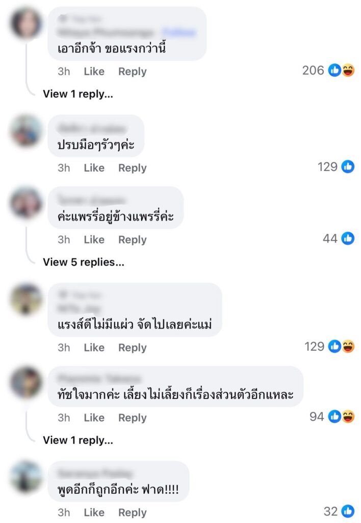 งานนี้ชาวเน็ตแห่เข้ามาคอมเมนต์เห็นด้วยกับ “แพรรี่” เป็นจำนวนมาก อาทิ “เอาอีกจ้า ขอแรงกว่านี้ , ปรบมือๆรัวๆค่ะ , ค่ะแพรรี่อยู่ข้างแพรรี่ค่ะ , แรงส์ดีไม่มีแผ่ว จัดไปเลยค่ะแม่ , ทัชใจมากค่ะ เลี้ยงไม่เลี้ยงก็เรื่องส่วนตัวอีกแหละ , พูดอีกก็ถูกอีกค่ะ ฟาด!!!! , เปิดเลย รออยู่ , แรงงงงมากกแม่ , ทีมคุณแพรี่ค่ะ”