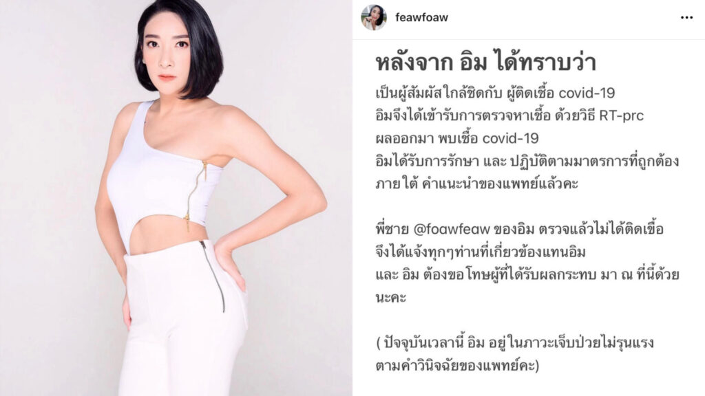 นักแสดงสาว"เฟี้ยวฟ้าว"แจ้งติดโควิดอาการไม่รุ่นแรง เข้ารักษาตัวแล้วเผยพี่ชายไม่พบเชื้อ