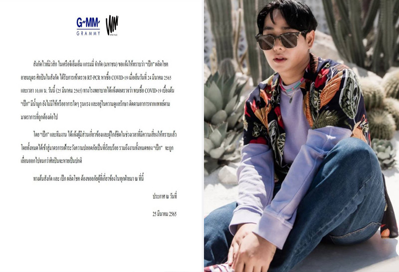 ต้นสังกัดแจ้ง! "เป๊ก ผลิตโชค" ติดเชื้อโควิด-19 พร้อมแจ้งเลื่อนงานทั้งหมด จนกว่าจะหายดี