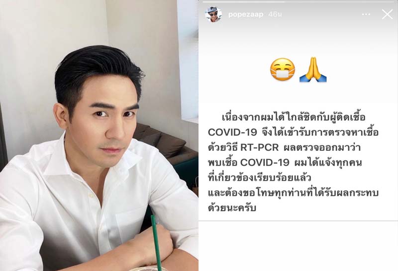 อีกราย! “โป๊ป ธนวรรธน์” ติดโควิด ขอโทษคนใกล้ชิด