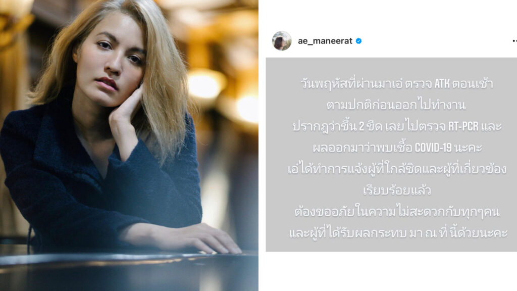 พบอีกราย!”เอ๋ มณีรัตน์”แจ้งติดโควิด ลั่นขอโทษผู้ที่ได้รับผลกระทบ