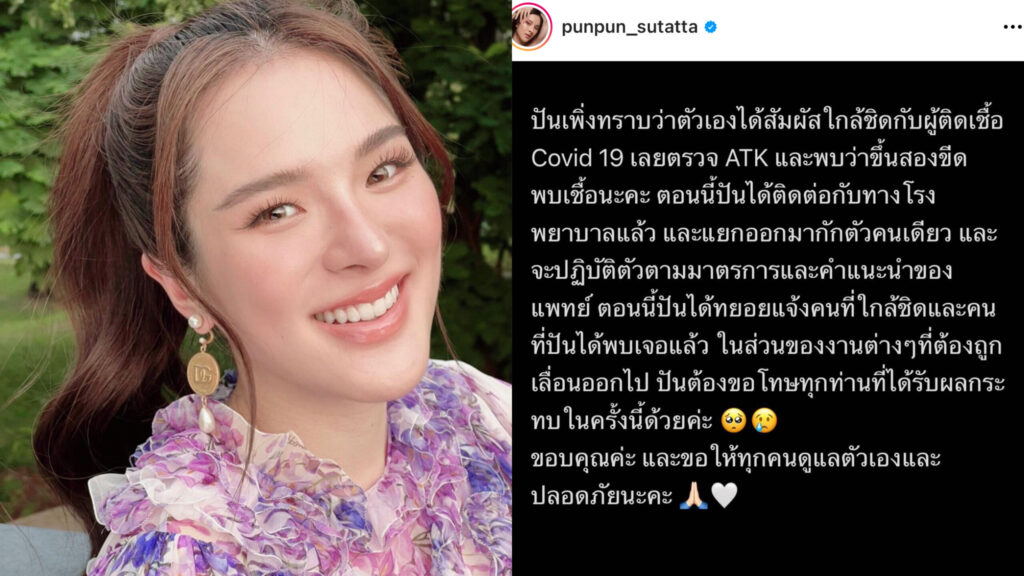 มาอีกราย!”ปันปัน สุทัตตา”แจ้งติดโควิด เผยงานต้องเลื่อนออกไปจนกว่าหายดี