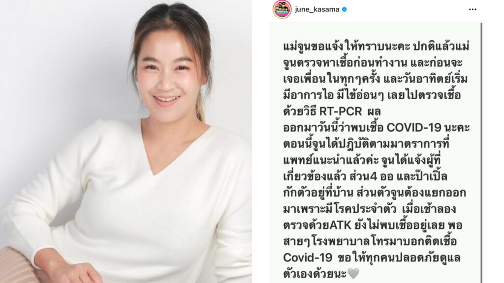 พบอีกราย!”จูน กษมา”แจ้งติดเชื้อโควิด เข้ารักษาตัวรพ.แล้วเพราะมีโรคประจำตัว