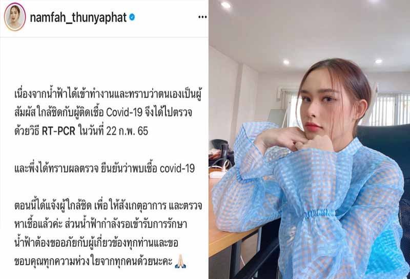 ระบาดหนัก! “น้ำฟ้า ธัญญภัสร์” แจ้งติดโควิดอีกราย กำลังรอเข้ารับการรักษา