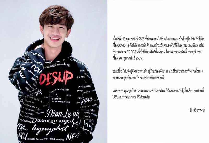 “บี เสถียรพงษ์” ประกาศติดโควิด-19 เข้ารักษาตัวแล้ว ยกเลิกงานจนกว่าหายดี